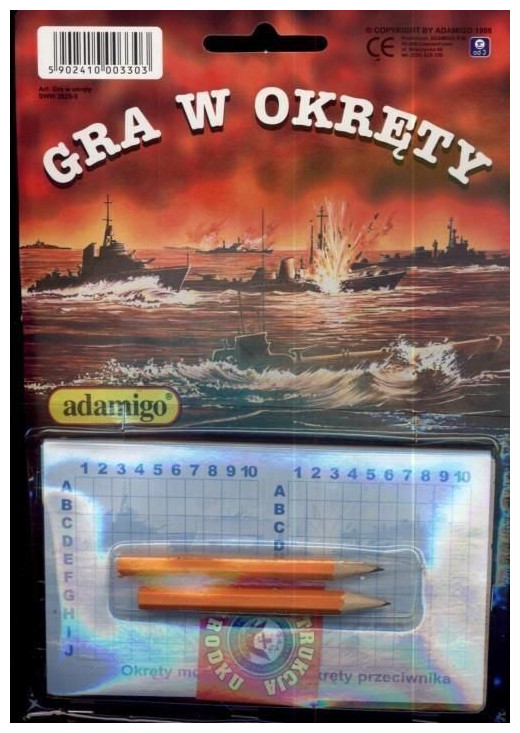 Το παιχνίδι με το πλοίο είναι ένα μοναδικό παιχνίδι παζλ γνωστό από το σχολείο. Ο στόχος του παιχνιδιού είναι να καταρρίψει όλα τα εχθρικά πλοία. Ένα παιχνίδι που αναπτύσσει την ικανότητα πρόβλεψης και σκέψης, και ταυτόχρονα ενδιαφέρουσα και συναρπαστική ψυχαγωγία Το σετ παιχνιδιού περιλαμβάνει: - ένα σετ καρτών, - μολύβια για 2 παίκτες, - οδηγίες.Παιχνίδι {Genre} Ship . {Αριθμός παικτών} 2 . {Ηλικία} Από 11 ετών