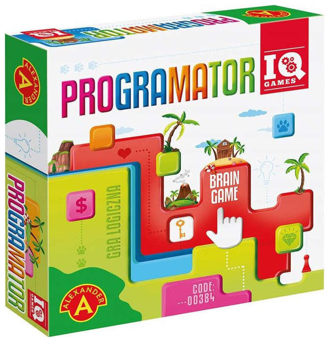 Tylko ty znasz swoją tajemnicę, nie możesz jej zdradzić nikomu! Do czasu… Poprowadź rozgrywkę tak, by zdobyć jak najwięcej punktów i zaskocz innych tym, co ukrywałeś przez całą grę. Zdobywaj punkty, wyprzedzaj rywali i udowodnij, że jesteś najlepszy. „Programator” to wymarzona gra logiczna dla zawodników uwielbiających dreszczyk emocji i kombinowanie! Zawartość opakowania: plansza - 1 szt., tekturowe pionki postaci - 5 szt., podstawki do pionków - 5 szt., kolorowe pionki - 5 szt., tabliczka ruchu - 1 szt., żetony kolorów - 10 szt., żetony bazy - 5 szt., pchełki - łącznie 150 szt., (pchełki żółte (+1 punkt) - 100 szt., pchełki czerwone (-2 punkty) - 30 szt., piramidki (+5 punktów) - 20 szt.), instrukcja - 1 szt. Wymiary opakowania: 24,5 x 25,5 x 6 cm. Wiek 6+.