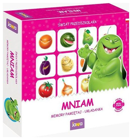 Παζλ μνήμης για παιδιά προσχολικής ηλικίας Τα παιδιά αναζητούν τις ίδιες εικόνες. Αυτός που θα συγκεντρώσει τα περισσότερα ζευγάρια κερδίζει. Παιχνίδι μνήμης, αναπτύσσει οπτική ανάλυση και σύνθεση, υποστηρίζει τη λειτουργία του συσχετισμού και της αναγνώρισης αντικειμένων Περιέχει 32 πέτρες και ένα ζάρι Ηλικία παικτών: 5+ Αριθμός παικτών: 2-4 Χρόνος παιχνιδιού: 15 λεπτά{Ελάχιστη ηλικία παίκτη} 5 έτη . {Approximate gameplay time} Οποιοδήποτε . {Version} Επιτραπέζιο παιχνίδι. {Ελάχιστος αριθμός παικτών} 2 . {Μέγιστος αριθμός παικτών} 4 . {Genre} Για παιδιά . {Language version} Πολωνία