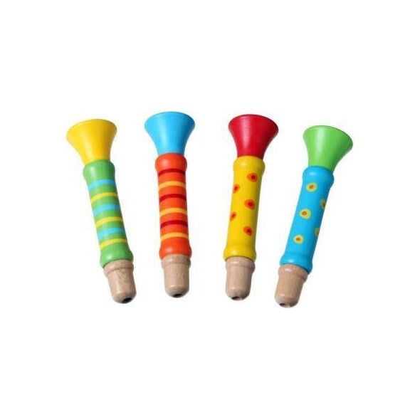 Pięknie pomalowana drewniana trąbka z dźwiękiem, do kreatywnego i przyjemnego poznawania świata muzyki!