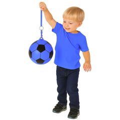 Piłka Gumowa Wzór Piłki Nożnej Uchwyt Na Sprężynę Niebieska 22cm EDUKAMP
