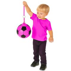 Piłka Gumowa Wzór Piłki Nożnej Uchwyt Na Sprężynę Różowa 22cm EDUKAMP