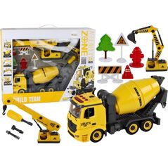 LeanToys Οχήματα Κατασκευών Ήχος Φώτα 1:12 DIY Μπετονιέρα Γερανός Εκσκαφέας