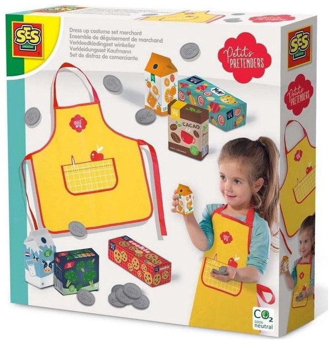 Μπείτε στον κόσμο της διασκέδασης με το Petits και γίνετε πραγματικός πωλητής σούπερ μάρκετ! Αυτό το σετ περιλαμβάνει μια ποδιά, κέρματα και έξι προϊόντα σούπερ μάρκετ για να ξεκινήσετε να παίζετε υπάλληλος σούπερ μάρκετ. Ο πρώτος πελάτης έφτασε ήδη! Πόσα χρήματα πρέπει να πληρώσει για ένα κουτί γάλα και ένα πακέτο γλυκά; Συνδυάζεται επίσης καλά με άλλα προϊόντα λιανικής και μαγειρικής από τη συλλογή Petits pretenders.{Ηλικία} Από 3 ετών. {Kind} Παίζοντας κατάστημα
