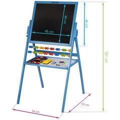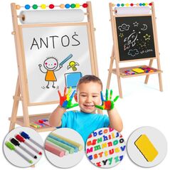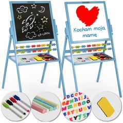 Πίνακας Jokomisiada 2 σε 1 μαγνητικός-μαυροπίνακας για παιδιά 3+ Αξεσουάρ + Ρύθμιση ύψους + Σκαμπό + Ράφι + Μαρκαδόροι Κιμωλία