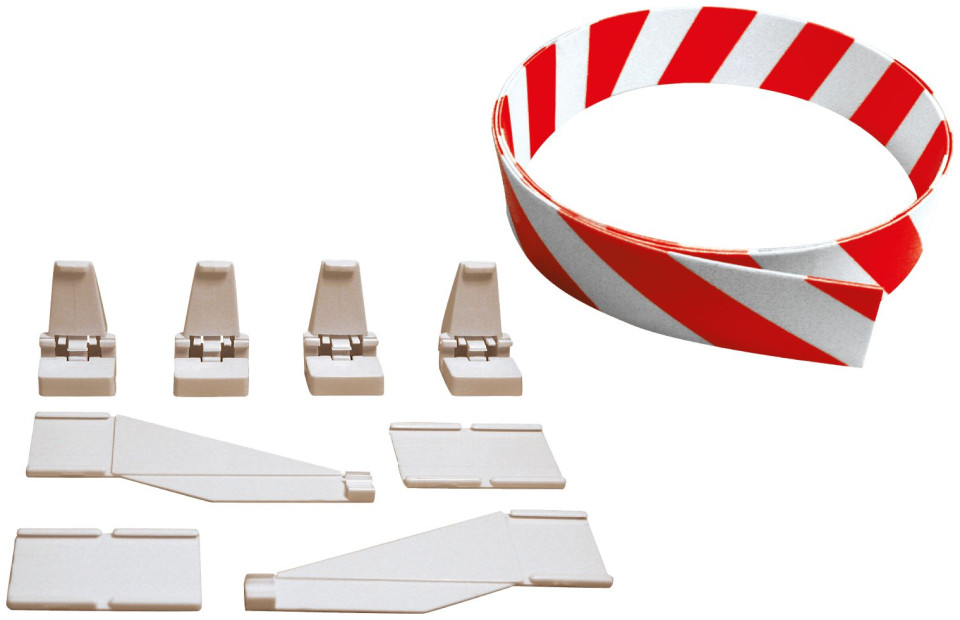 3 μέτρα φραγμάτων, 24x στηρίγματα φραγμού, 6x σύνδεσμοι, 12x τερματισμοί.