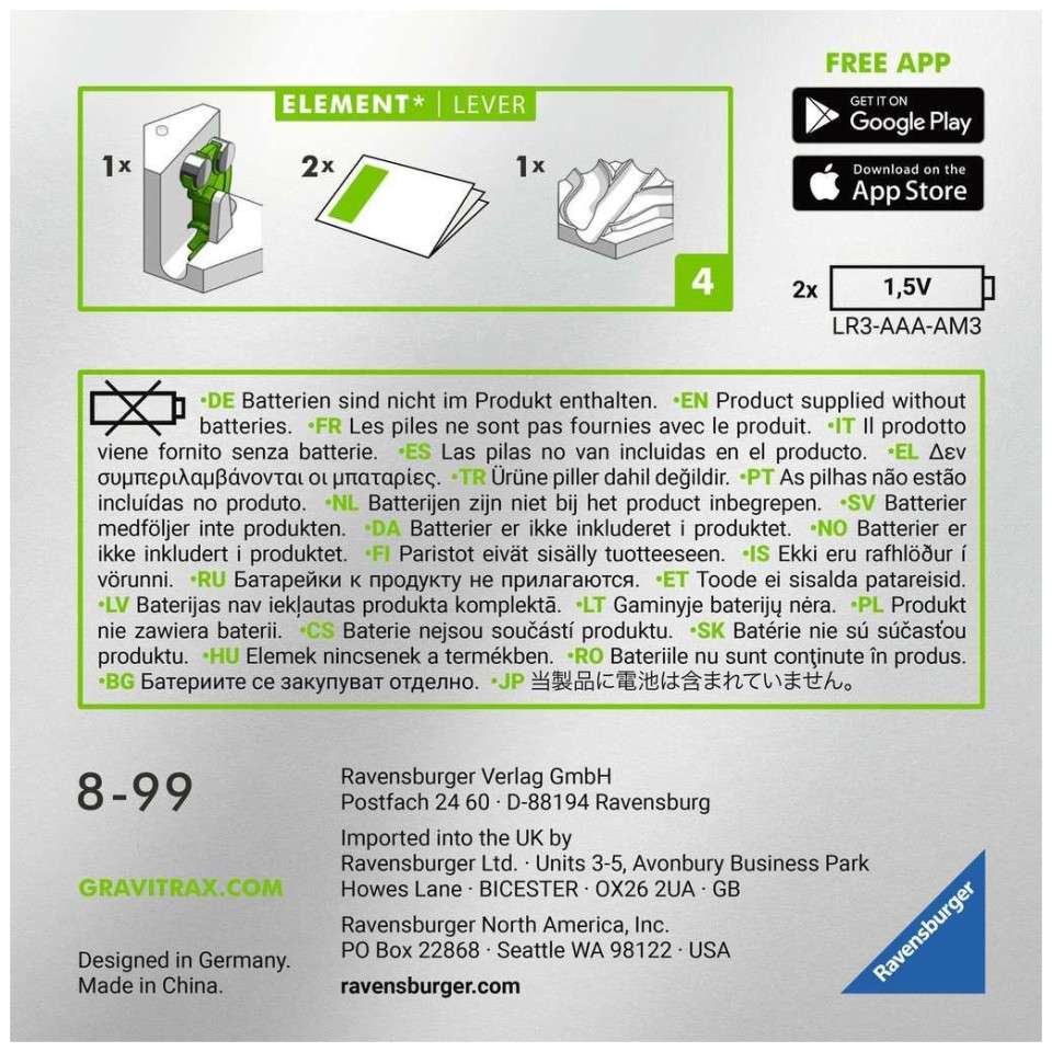 Ravensburger 261864. Τύπος προϊόντος: Γυάλινη τσουλήθρα μπάλας, Προτεινόμενη ηλικία (min): 8 έτη, Αριθμός εξαρτημάτων: 4 τεμ.