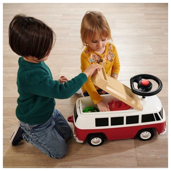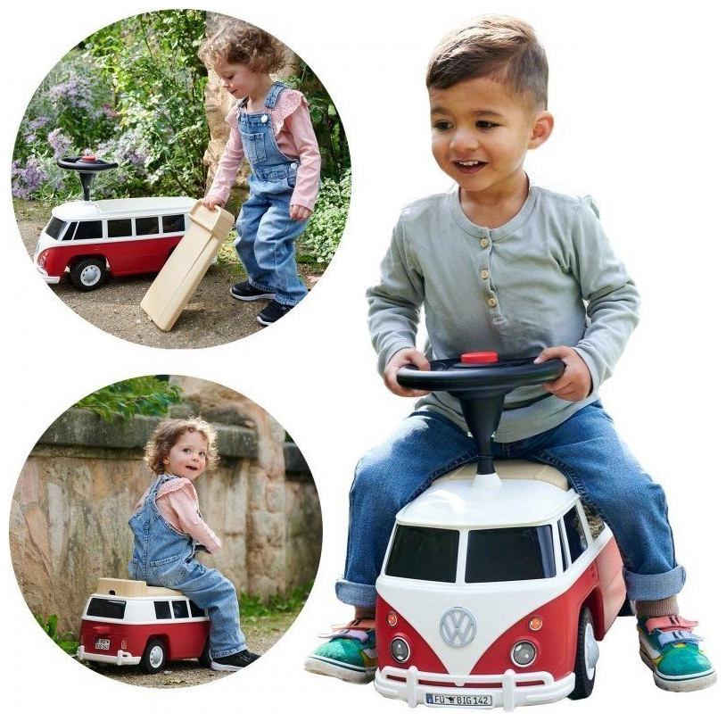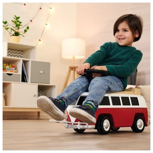 Το Van Ride-on από τη διάσημη εταιρεία BIG είναι ένα όχημα που μοιάζει με πραγματικό αυτοκίνητο Volkswagen. Είναι σταθερό και ασφαλές - ιδανικό για παιδιά που ξεκινούν την περιπέτειά τους με οχήματα. Η αφαιρούμενη οροφή του αυτοκινήτου κρύβει ένα ευρύχωρο εσωτερικό που παρέχει αρκετό χώρο για φιγούρες δράσης και κούκλες έως 12 cm. Μπορούν να συνοδεύσουν τους μικρούς τυχοδιώκτες στα ταξίδια τους και είναι πάντα έτοιμοι να τους κρατήσουν συντροφιά στα μικρά διαλείμματα ανάπαυσης. Το φορτηγό είναι επίσης εξοπλισμένο με υψηλής ποιότητας, αθόρυβους τροχούς, που αρέσουν ιδιαίτερα στους γονείς και που επιτρέπουν στους μικρούς οδηγούς να κυκλοφορούν ήρεμα στους κήπους και στα παιδικά δωμάτια Χάρη στα εξαιρετικά μαλακά πλαστικά ελαστικά που δεν σημαδεύουν, δεν υπάρχει επίσης κανένας κίνδυνος αφήνοντας σημάδια στο πάτωμα, οπότε το ride-on είναι ιδανικό και για χρήση σε εσωτερικούς χώρους. Το ride-on είναι κατασκευασμένο έτσι ώστε τα παιδιά να μπορούν να δοκιμάσουν και να αναπτύξουν νέες δεξιότητες - ανέβασμα, κατέβασμα, σπρώξιμο και τιμόνι. Αυτό είναι ένα ιδανικό δώρο για ένα παιδί από 2 ετών. Χαρακτηριστικά: - προορίζεται για παιδιά από 2 ετών
