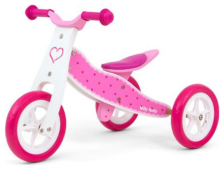 - rowerek z drewna- ogranicznik skrętu kierownicy- antypoślizgowe rączki z osłonkami- 9” piankowe koła- 4 stopniowa regulacja wysokości siodełka- łożyska ślizgowe- dwufunkcyjność (rowerek trójkołowy lub dwukołowy)- maksymalne obciążenie 25 kg- przedział wiekowy 18-36 miesięcy- spełnia europejskie normy bezpieczeństwa