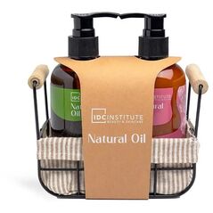 Rinkinys Idc Intitute Natural Oil moterims: dušo želė, 250 ml + kūno losjonas, 250 ml + krepšelis, 1 vnt.