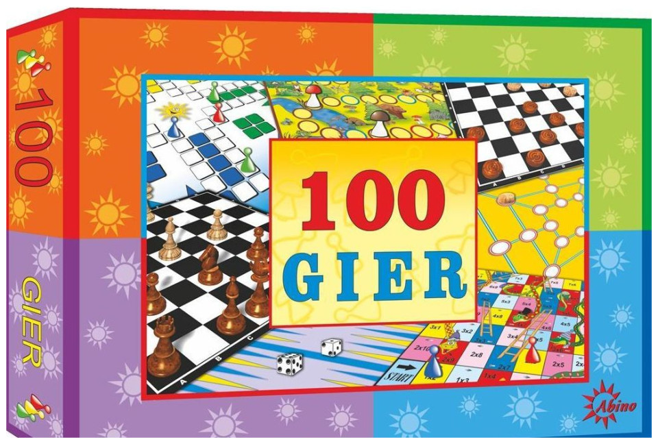 Ένα σύνολο εκατό διαφορετικών παιχνιδιών, συμπεριλαμβανομένων επιτραπέζιων παιχνιδιών, παιχνιδιών arcade, τυχαίων παιχνιδιών και παιχνιδιών με κάρτες. Τα παιχνίδια είναι μεγάλη διασκέδαση για όλη την οικογένεια. Ο καθένας θα βρει κάτι κατάλληλο για τον εαυτό του σε αυτό το σετ ΠΕΡΙΕΧΟΜΕΝΑ: 3 σανίδες διπλής όψης σε χοντρό χαρτόνι, 16 κομμάτια παιχνιδιού αίθουσας, 30 πιόνια ντόμινο, 5 ζάρια, 15 πήλινα μανιτάρια, πλαστικό κύπελλο.{Ελάχιστος αριθμός παικτών} 1 . {Μέγιστος αριθμός παικτών} 4 . {Language version} Πολωνία . {Approximate gameplay time} Δεν υπάρχουν διαθέσιμα δεδομένα