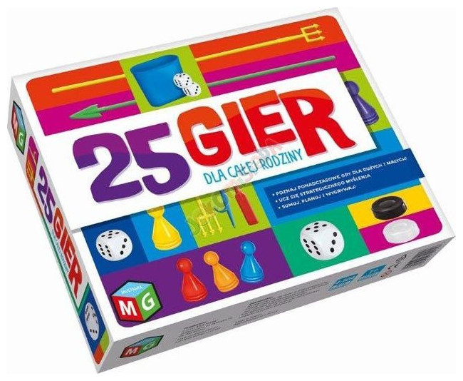 25 ΠΑΙΧΝΙΔΙΑ Αυτό το σετ παιχνιδιών είναι φανταστική διασκέδαση για όλη την οικογένεια, τόσο για ενήλικες όσο και για παιδιά. Μεγάλη διασκέδαση που διασκεδάζει ολόκληρες γενιές. Μην περιμένετε, γνωρίστε τα πιο ενδιαφέροντα παιχνίδια στον κόσμο Το σετ περιλαμβάνει: επιτραπέζια παιχνίδια - παιχνίδια σε σανίδα ντάμα (παραδοσιακά πούλια, πούλια γωνιών, πούλια μονής κατεύθυνσης, κελτικά πούλια, πούλια με δυνατότητα αποφυγής, ιταλικά πούλια, πυραμίδα, λύκοι και πρόβατα, αστυνομικοί και κλέφτες, GO-BANG, MING-MANG) - παιχνίδια στο μια σανίδα για κινέζικα (κινέζικα, κινέζικα, ληστής) - κομμάτια - ζάρια - σταυρόλεξο - στη βάση - δεκαεπτά - παιχνίδια καρτών (μάτι, χίλια και ένα, χίλια, πόλεμος, Μακάο)