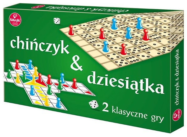 Το Chinczyk & Ten είναι ένα σύνολο δύο στρατηγικών τυχαίων παιχνιδιών που προσφέρουν στους παίκτες πολύ ενθουσιασμό. Μετακινήστε όλα τα κομμάτια σας κατά μήκος του ταμπλό και τοποθετήστε τα στην αρχική γραμμή του αντιπάλου στην περίπτωση του παιχνιδιού Ten, ή όπως στο κινέζικο παιχνίδι, προσπαθήστε να φέρετε όλα τα κομμάτια σας στο τελικό πεδίο. Το σετ παιχνιδιών Ten περιλαμβάνει: έναν πίνακα, 8 πιόνια (τέσσερα σε ένα χρώμα) και ένα ζάρι. Το κινέζικο σετ παιχνιδιού περιλαμβάνει: έναν πίνακα, ζάρια και 16 κομμάτια σε τέσσερα διαφορετικά χρώματα.