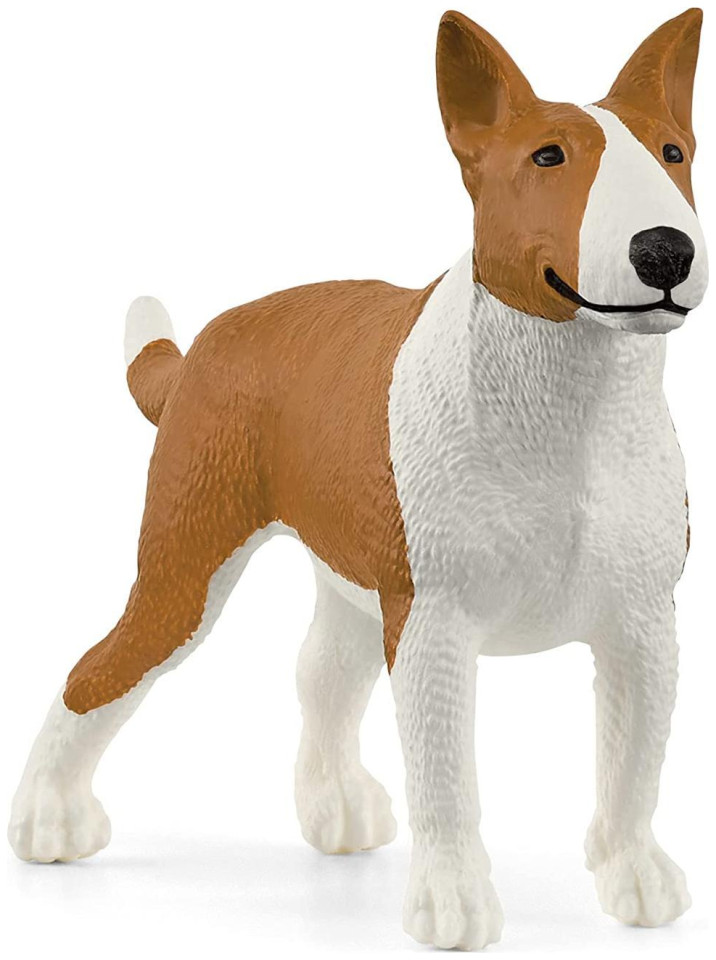 Υφάδι! Το μπουλ τεριέ μας από τη σειρά Schleich® FARM WORLD λατρεύει όλα τα είδη παιχνιδιών, αθλημάτων και διασκέδασης. Και ροζ μαξιλαροθήκες. Αυτός ο σκύλος ξεσπά από ενέργεια. Χάρη στα μυώδη πίσω πόδια του, μπορεί να ξεπεράσει με επιτυχία εμπόδια όπως οι καρέκλες κήπου. Ή βγάζει αυτοκίνητα θαμμένα κάπου στο κρεβάτι.