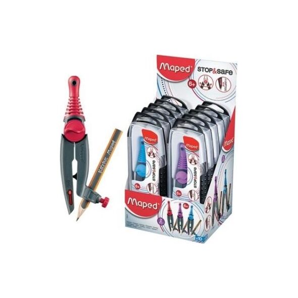 Πυξίδες STOP&SAFE με προηγμένο σύστημα ασφαλείας. Η βελόνα ανασύρεται αυτόματα όταν οι βραχίονες είναι κλειστοί. Η εργονομική, λαστιχένια λαβή την εμποδίζει να γλιστρήσει από το χέρι σας. Είναι δυνατό να κλειδώσετε τους βραχίονες της πυξίδας σε μια συγκεκριμένη θέση. Το σετ περιλαμβάνει ξύλινο μολύβι. Ένας συνδυασμός τριών χρωμάτων: μπλε, μωβ και κόκκινο.