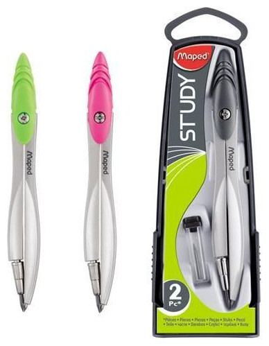 Μεταλλικές πυξίδες STUDY σε πλαστική θήκη με μύτη γραφίτη και εφεδρικό ένθετο γραφίτη.