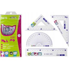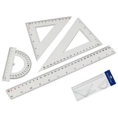 Σετ γεωμετρικών εργαλείων 4 τεμαχίων χάρακας 15cm 2 τρίγωνα 60* 45* μοιρογνωμόνιο 180