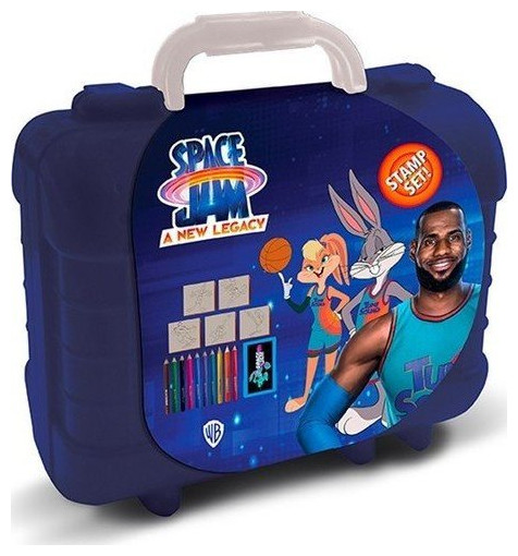 Γραμματόσημα με άδεια χρήσης Space Jam. Το σετ περιλαμβάνει: 5 γραμματόσημα, 1 μελάνι, 1 τετράδιο, 36 αυτοκόλλητα και 10 μπογιές για παιδιά από 3 ετών