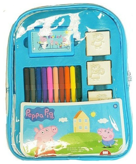 Ένα σετ γραμματοσήμων με αξεσουάρ, συσκευασμένα σε σακίδιο για εύκολη αποθήκευση και μεταφορά Περιεχόμενα: 4 ξύλινα γραμματόσημα, 10 μαρκαδόροι, ένα κουτί με ένα σφουγγάρι εμποτισμένο με μη τοξικό μελάνι, 30 αυτοκόλλητα, ένα σημειωματάριο, ένα παιχνίδι για παιδιά 3 ετών. +