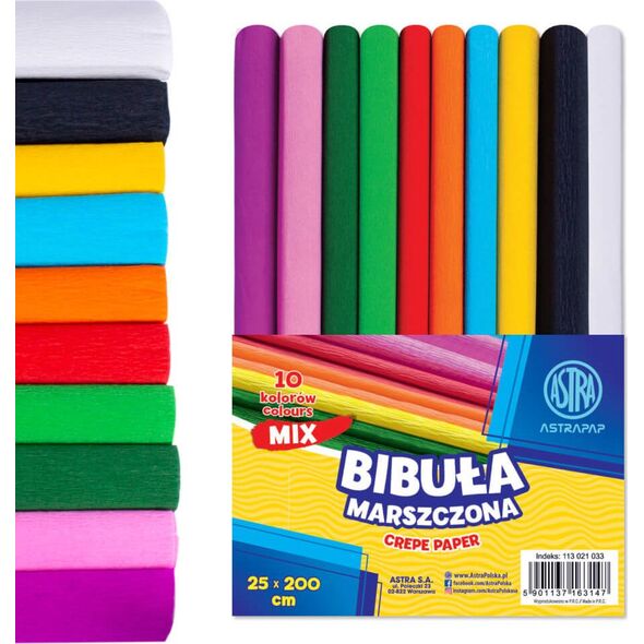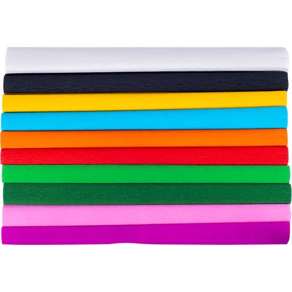 Bibuła szkolna marszczona, krepina zestaw 10 kolorów podstawowych