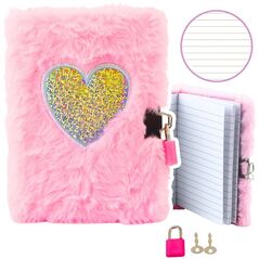 Λούτρινο Ημερολόγιο Σημειωματάριο με Κλειδαριά 2 Κλειδιά Καρδιά Ροζ A6 80 Σελίδες LEAN