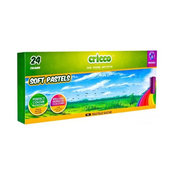 CRICCO ξηρά παστέλ. Τετράγωνη διατομή. Έντονα, κορεσμένα χρώματα. Το τετράγωνο σχήμα και ο πλευρικός προσανατολισμός του μολυβιού σας επιτρέπει να καλύψετε μεγάλες περιοχές με μία κίνηση. Μπορείτε να αναμίξετε και να σκιάσετε χρώματα. Για να αποφύγετε την κηλίδα του σχεδίου, χρησιμοποιήστε ένα σταθεροποιητικό. Μήκος παστέλ: 27mm. Διάμετρος παστέλ: 10mm. Περιλαμβάνονται 24 χρώματα.{Αριθμός χρωμάτων} 24 . {Type} Ξηρά παστέλ