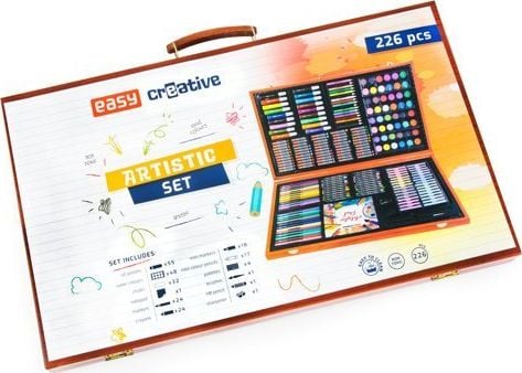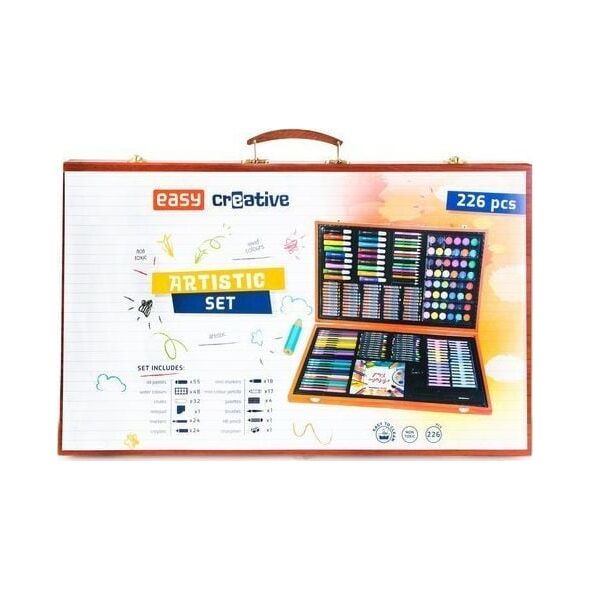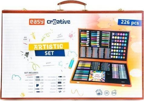 Ένα σετ τέχνης είναι μια τέλεια αρχή για την περιπέτεια ενός νεαρού καλλιτέχνη. Το σετ είναι λειτουργικό και αποτελείται από συνολικά 226 πρακτικά στοιχεία. Το πλήθος των αξεσουάρ θα κάνει κάθε χρήση του καλλιτεχνικού συνόλου ένα τέλειο ταξίδι στον κόσμο της τέχνης. Το σετ περιλαμβάνει 48 μπογιές ακουαρέλας, 4 παλέτες, 17 μίνι κραγιόνια, 18 μίνι μαρκαδόρους, 55 λαδοπαστέλ, 32 κιμωλίες, 24 ξυλομπογιές, 24 μαρκαδόρους, 1 ξύστρα, 1 μολύβι HB, 1 πινέλο, 1 σημειωματάριο. Τα σκεύη είναι κατασκευασμένα από υλικά υψηλής ποιότητας και διατίθενται σε μεγάλη γκάμα χρωμάτων, γεγονός που καθιστά ακόμα πιο εύκολη την εκτέλεση έργων τέχνης ή την καθημερινή χρήση. Το όλο πράγμα τοποθετήθηκε σε μια κομψή και πρακτική βαλίτσα, διευκολύνοντας τη μεταφορά και ενισχύοντας επιπλέον την αισθητική αξία ολόκληρου του σετ. Ένα σετ ζωγραφικής και σχεδίου δεν είναι μόνο απαραίτητο για κάθε μαθητή ή λάτρη των δημιουργικών εργασιών, αλλά και μια εξαιρετική ιδέα δώρου. Παράμετροι: - 48 ακουαρέλες, - 4 παλέτες, - 17 μίνι μαρκαδόροι, - 55 λαδοπαστέλ - 32 κιμωλίες - 24 κραγιόνια - 24 μαρκαδόροι - 1 ξύστρα - 1 μολύβι HB - 1 βούρτσα - 1 σημειωματάριο