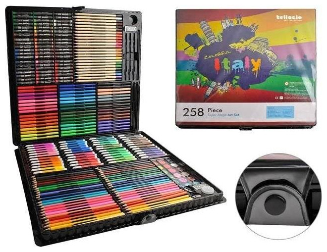 Ένα τεράστιο σετ ζωγραφικής και σχεδίου είναι υπέροχο για να ξεκινήσετε την καλλιτεχνική σας περιπέτεια τόσο για χομπίστες όσο και για πιο έμπειρους καλλιτέχνες. Το σετ είναι λειτουργικό και αποτελείται από συνολικά 258 χρήσιμα εξαρτήματα και μια πρακτική βαλίτσα. Ένας μεγάλος αριθμός στοιχείων επιτρέπει την πρακτική χρήση και θα σας επιτρέψει να εφαρμόσετε διάφορες δημιουργικές ιδέες.