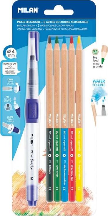 Milan Waterbrush + 5 μολύβια ακουαρέλας MILANMilan Waterbrush + 5 μολύβια ακουαρέλας MILAN