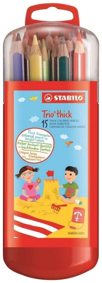 STABILO Trio παχύ - ένα χοντρό κραγιόνι με εργονομική, τριγωνική διατομή σχεδιασμένο για παιδιά. Ένα επιπλέον πλεονέκτημα είναι ένας πολύ παχύς πυρήνας με διάμετρο 4,2 mm, ανθεκτικός στη θραύση. Τα έντονα χρώματα και ο απαλός πυρήνας κάνουν το χρωματισμό πραγματική απόλαυση. Τα κραγιόνια είναι διαθέσιμα σε 15 χρώματα.{Αριθμός χρωμάτων} 15 . Μολύβι {Τύπος}