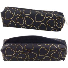 Κασετίνα Σχολική Γραφείου Μονόχωρη Χρυσές Καρδιές Μαύρη 20x6,5 εκ