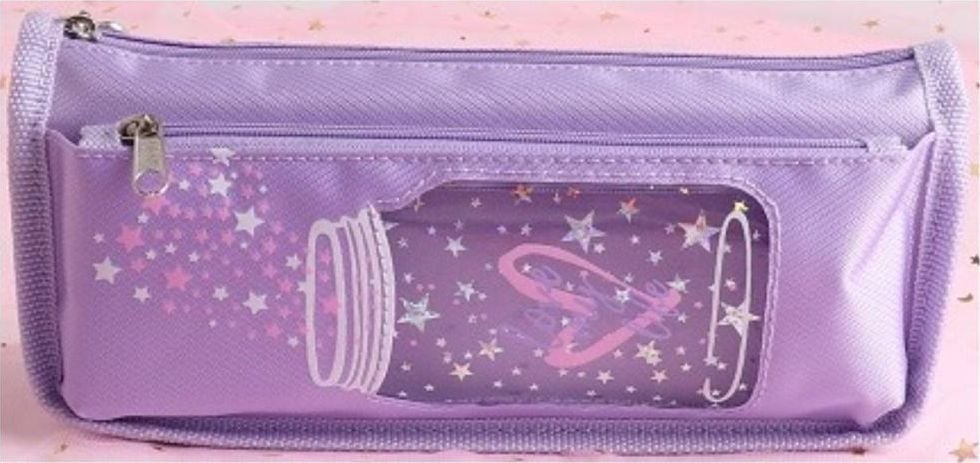 Μολυβοθήκη με δύο θήκες με φερμουάρ. Ιδανικό για το σχολείο.{Με εξοπλισμό} Αρ. {Βιολέτα