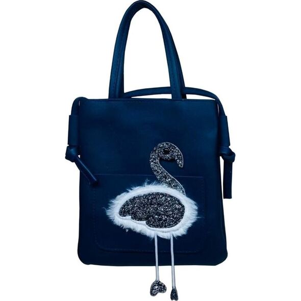 Μια μικρή, μαύρη τσάντα από τη συλλογή Bourgeois. Είναι διακοσμημένο με μοτίβο φλαμίνγκο από πούλιες. Το κεφάλι του πουλιού είναι επίσης ένα κούμπωμα για την εξωτερική τσέπη. Η τσάντα στερεώνεται με φερμουάρ. Μπορεί να φορεθεί τόσο στο χέρι όσο και στον ώμο (έχει μακρύ ρυθμιζόμενο λουράκι). Αγαπημένο από τα κορίτσια.