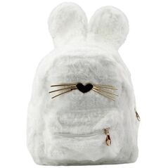 Παιδικό Σακίδιο Γούνινο Λούτρινο Αυτιά Μύτη Μουστάκια Κουνελιού Λευκό 3L 22cm