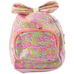 Παιδικό Σακίδιο Με Παγιέτες Σε Λουλούδια Φιόγκος Ανοιχτό Ροζ 22cm 2,8L