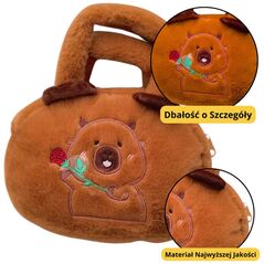 Τσάντα Λούτρινη με Καπιμπάρα με Ρόδο Καφέ 20cm