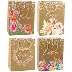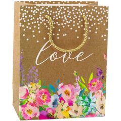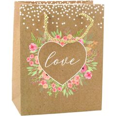 Τσάντα Δώρου Με Επιγραφή Love Λουλούδια 23 x 18 x 10,5 cm