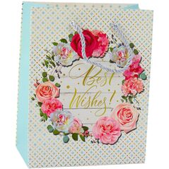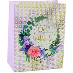 Τσάντα Δώρου Σχέδια Λουλούδια Best Wishes 23 x 18 x 10,5 cm
