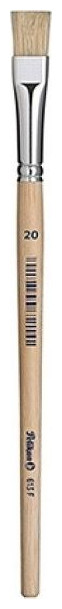 Pędzelek 613 F z krótką skuwką i prawdziwą świńską szczeciną. Włosie pędzelka jest połączone bezszwowo z drewnianym tępo zakończonym trzonkiem w naturalnym kolorze za pomocą aluminiowej skuwki.