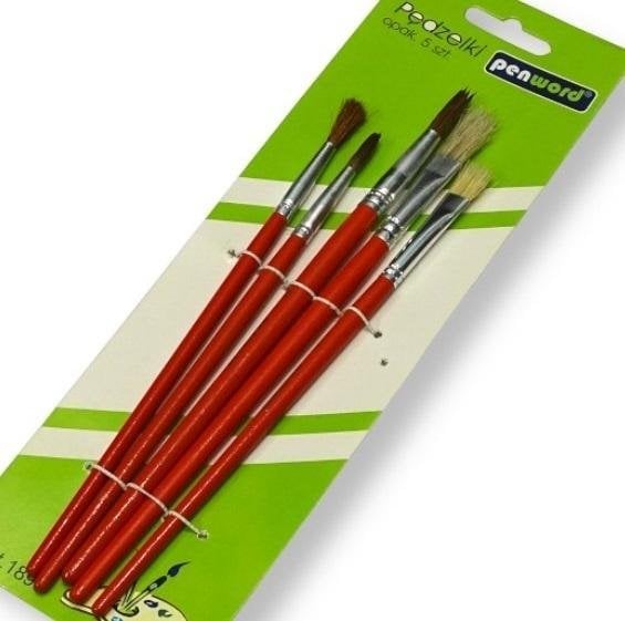 Ένα σετ 5 πινέλων για βάψιμο στο σχολείο ή στο σπίτι Τα πινέλα του σετ έχουν διαφορετικά πλάτη και σχήματα: 24,5 x 8,5 x 1 cm