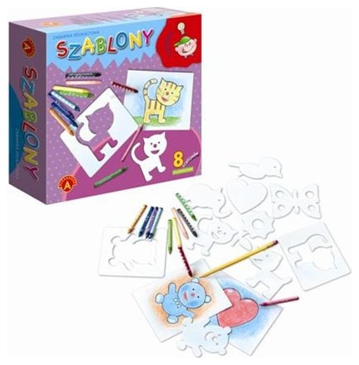 Το "Templates" είναι ένα παιχνίδι που αποτελείται από 8 πρότυπα (θετικά και αρνητικά). Τα πρότυπα δείχνουν 8 διαφορετικά σχέδια. Χάρη σε αυτά, το παιδί μπορεί εύκολα να σχεδιάσει το επιλεγμένο μοτίβο, το οποίο είναι ένα κίνητρο και μια δικαιολογία για να ζωγραφίσει ολόκληρη την εικόνα: 8 θετικά πρότυπα, 8 αρνητικά πρότυπα, 12 κραγιόνια, μολύβι, μπλοκ, εικονογράφηση.