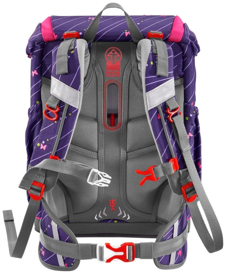 Η σχολική τσάντα είναι εξοπλισμένη με ειδικό σύστημα Easy Grow που σας επιτρέπει να αλλάξετε το ύψος των ιμάντων ώμου. Χάρη σε αυτό, μπορείτε να προσαρμόσετε το ύψος τους στο ύψος του παιδιού. Όλα αυτά για να διατηρηθεί η εργονομική εφαρμογή της σχολικής τσάντας όλα τα χρόνια των σπουδών. Η σχολική τσάντα δεν θα βρίσκεται πολύ χαμηλά, τα μαξιλάρια με περίγραμμα θα βρίσκονται στο σωστό σημείο για να εξασφαλίσουν πλήρως την άνεση και την υγεία του παιδιού. Μπορείτε να το προσαρμόσετε με τον πιο βολικό τρόπο - απευθείας στην πλάτη του παιδιού, χρησιμοποιώντας ένα πόμολο κρυμμένο μέσα.
