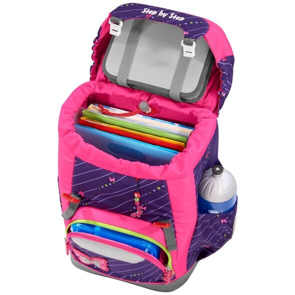 Η εργονομικά διαμορφωμένη πλάτη με ειδική αναπνεύσιμη επένδυση επιτρέπει την άνετη μεταφορά της σχολικής τσάντας. Τα ειδικά κανάλια αερισμού εξασφαλίζουν επαρκή αερισμό.