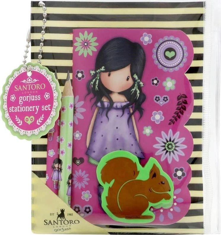 Το σετ αποτελείται από ένα τετράδιο με λείες, ροζ σελίδες, 2 μίνι μολύβια και μια γόμα σε σχήμα σκίουρου. Θα είναι χρήσιμο τόσο σε σακίδιο πλάτης όσο και σε τσάντα.