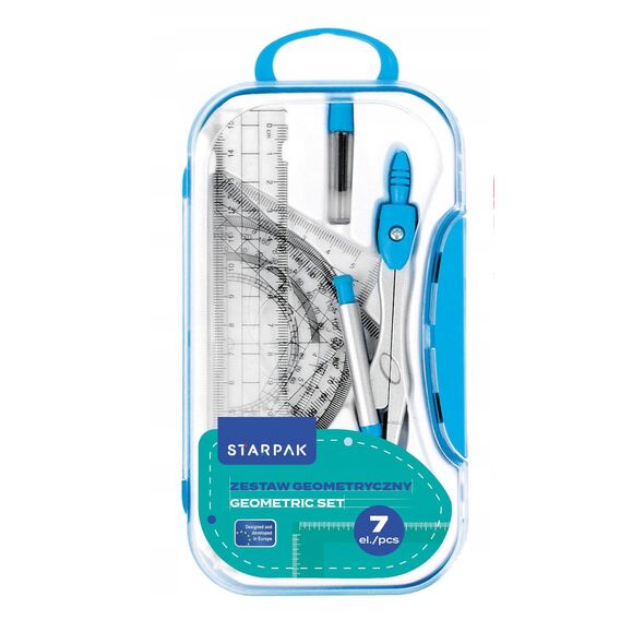 Σετ σχολικών γεωμετρικών εργαλείων 7 τεμαχίων μπλε Starpak θήκη PB 12/96