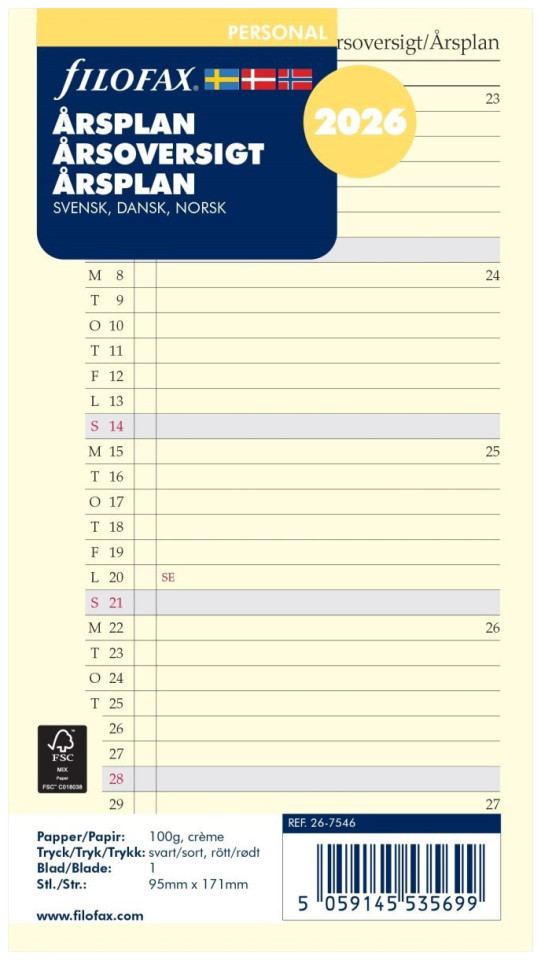 Ετήσιος Προγραμματισμός Personal 2026 Σουηδικά/Δανικά/Νορβηγικά