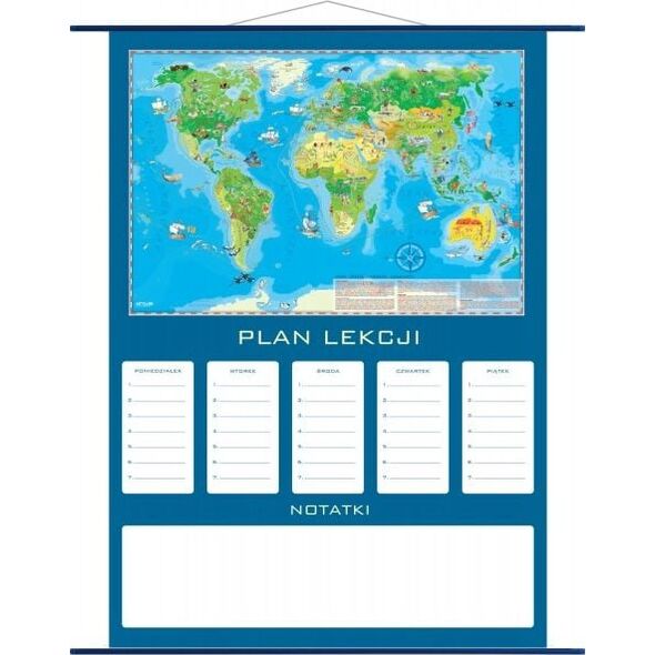 Ένα σχέδιο μαθήματος με γεωγραφικό χάρτη του κόσμου, που έχει εκπαιδευτικό και διακοσμητικό ρόλο. Οι ήπειροι και το έδαφος επισημαίνονται με καθαρά, ευχάριστα χρώματα. Πολύχρωμα εικονογράμματα παρουσιάζουν τα πιο διάσημα κτίρια, ζώα, φυσικά μνημεία και γεγονότα. Αυτό κάνει τον χάρτη μια συναρπαστική πηγή γνώσης για την ιστορία και το παρόν του πλανήτη μας. Παρουσιάζει πληροφορίες για τη γεωγραφία, τη φύση και τον πολιτισμό με έναν ενδιαφέροντα τρόπο. Διεγείρει τη φαντασία, ενθαρρύνει την απόκτηση γνώσεων και εμπνέει. Σας επιτρέπει να καταγράφετε καθαρά το πλάνο μαθήματος του παιδιού σας Το σχέδιο μαθήματος είναι πλαισιωμένο σε σωλήνες PVC, πλαστικοποιημένο, έτοιμο να κρεμαστεί (έχει σφεντόνα). Εάν ενδιαφέρεστε για διαφορετικό τύπο βιβλιοδεσίας, γράψτε μας. Θα ολοκληρώσουμε μια ατομική παραγγελία για εσάς.{Type} Σχέδια μαθήματος