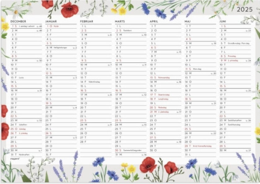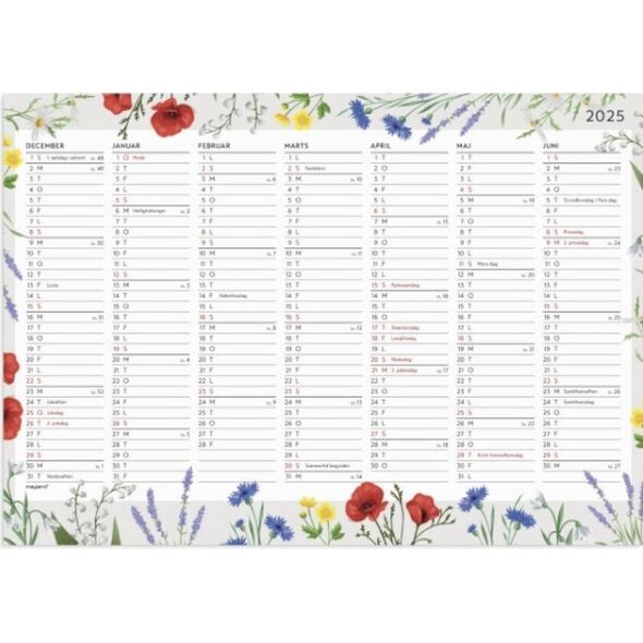 Ημερολόγιο τοίχου Λουλούδια A4 με 14 μήνες 2025