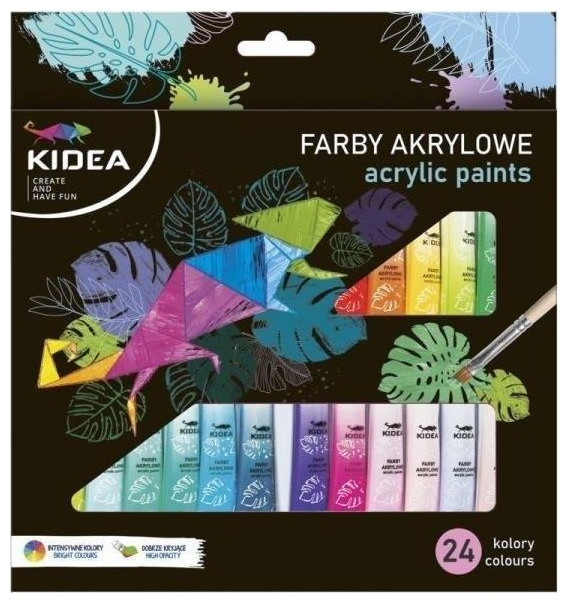 Τα ακρυλικά χρώματα σε έως και 24 αποχρώσεις της KIDEA θα αρέσουν σε κάθε μικρό καλλιτέχνη. Τα καλά καλυμμένα και εξαιρετικά αποτελεσματικά χρώματα θα σας επιτρέψουν να δημιουργήσετε μοναδικά έργα τέχνης με έντονα χρώματα Χάρη στους συμπιεσμένους σωλήνες με καπάκια, μπορείτε να πάρετε τη σωστή ποσότητα προϊόντος. Επιπλέον, αναμειγνύοντας τα χρώματα μεταξύ τους, θα αποκτήσετε περαιτέρω μοναδικές αποχρώσεις! Τα χρώματα θα είναι τέλεια για μια ποικιλία έργων τέχνης Επιπλέον, τα ακρυλικά χρώματα μπορούν να χρησιμοποιηθούν όχι μόνο σε χαρτί ή καμβά, αλλά και σε ξύλο, γυαλί ή πέτρες!