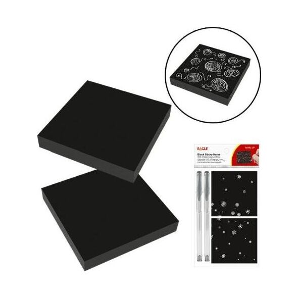 Το σετ περιλαμβάνει: - EAGLE 654 BL αυτοκόλλητο σημειωματάριο - 2P 7575 100 σελίδες μαύρο - 2 x ασημί στυλό